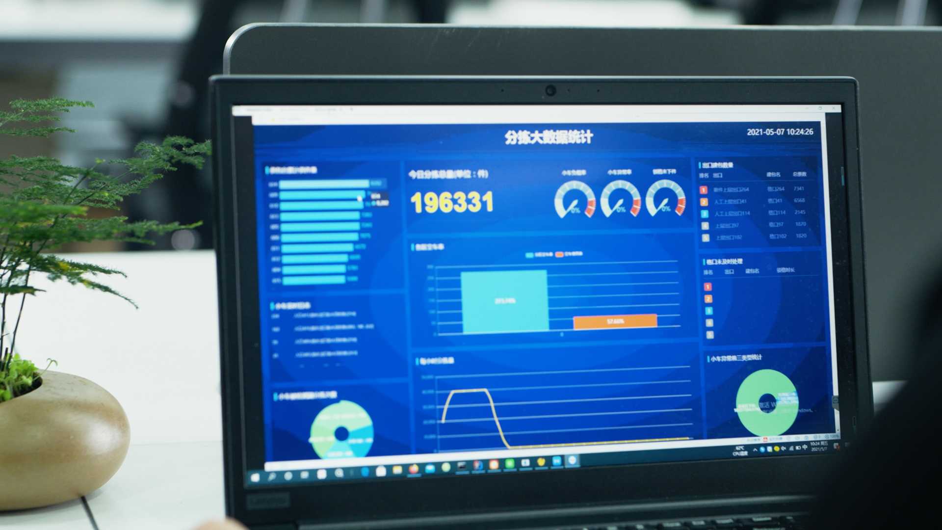 Real-time statistical display of sorting capacity and total operation volume.